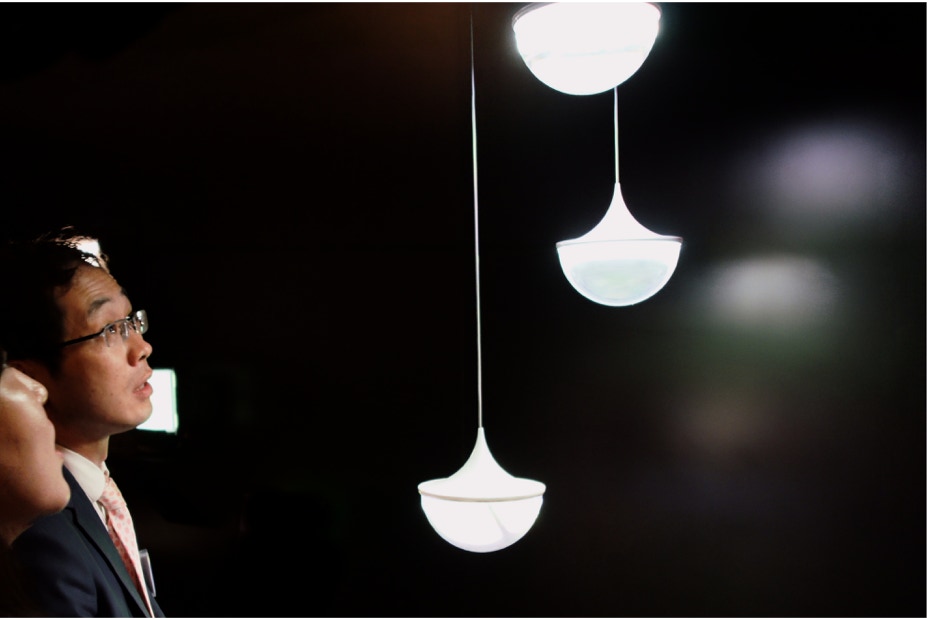 Almost all of my other work at UDC revolved around celebrating unique characteristics of OLED lighting panels: thinness, lightness, flexibility, or transparency. This would be a chance to do something different, design a lamp using the light-extraction hemisphere as inspiration.
