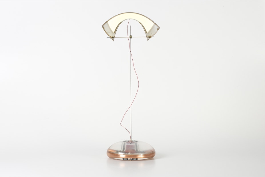 An exploration in extreme minimalism, create a lamp for the thinnest, lightest lighting panel yet fabricated. Since the panel was not expected to produce a useful amount of light, this would be more of a sculptural object than a functional lamp.